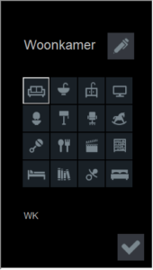 Selecteer een ruimte met het icoon Kamernamen en stel het in naar jouw wens.